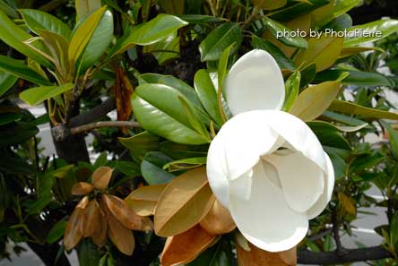 泰山木(たいざんぼく)って、コトバでは聞いたことありますが、実際に咲いている花をこの目で確かめたのは初めての体験です。こんなにでっかいんですねーっ!!