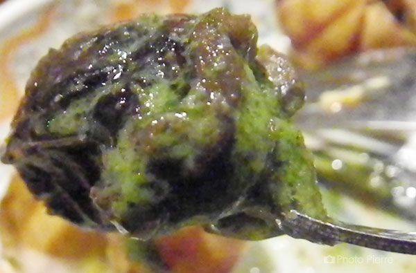 待つことおよそ5分。エスカルゴバターもよく溶け、おいしそうな殻付エスカルゴのできあがりです。親切なんだかお節介なんだか、ほじくりフォークまで付属していますから安心です。