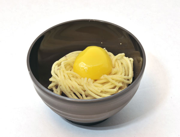 どこにも「ブラン」的要素がみあたらない紫芋のモンブラン。そこまでして「モンブラン」を名乗らせたい理由がちっとも理解できない。