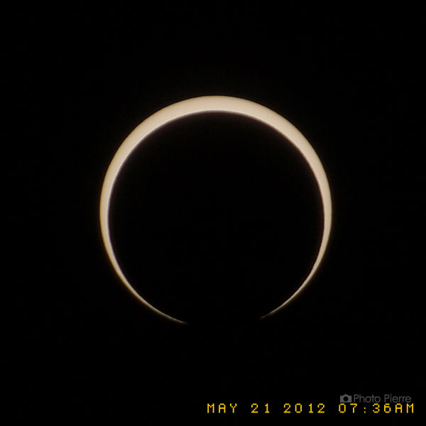 群馬・長野の国境に近い南牧村は、金環化するぎりぎり端っこのエリアなので、月と太陽の中心が揃わず、すこしずれた金環となりました。