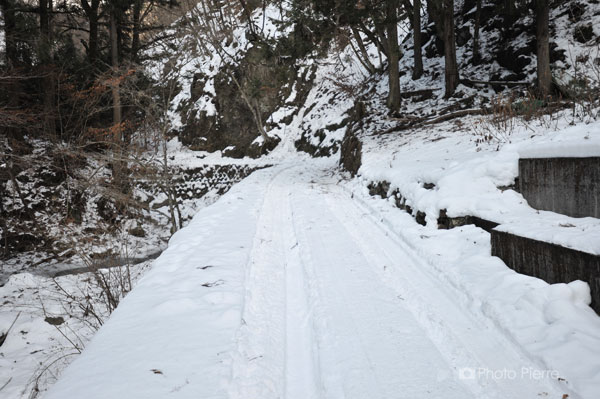 雪さえ無ければ5号橋近くに2〜3台駐車できますが、ひとたび降雪があると気温が低くなかなか融けません。さらに、鉄砲撃ちが獲物を運び出すために軽トラ等が中途半端に踏み固めてくれるので、二輪駆動の普通車ではかなり走りづらいと思います。