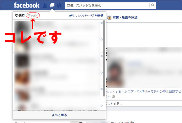 Facebook上でつながりがないため、メッセージは◎◎◎◎さんのその他のフォルダに送信されます。