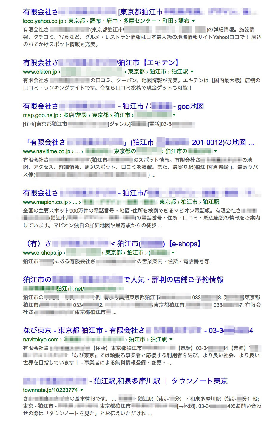 が表示されるばかりで、つまり住所と電話番号等の位置情報が検索されるだけで、肝心のサービス内容がさっぱりわかりません。どうしても貴店に! ということであれば、電話したり突撃したりして説明を受けるのは当然ですが、他にも類似のサービスが近隣にあるならば他をあたるからいいですよー……となってしまいます。